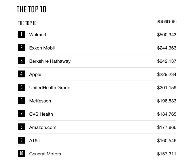 據(jù)《財富》雜志北京時間5月22日報道,《財富》雜志周一發(fā)布了2018年美國500強榜單,按照營收對美國大公司進行了排名。榜單顯示,蘋果公司下滑至第四,在科技公司中排名最高。