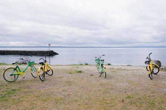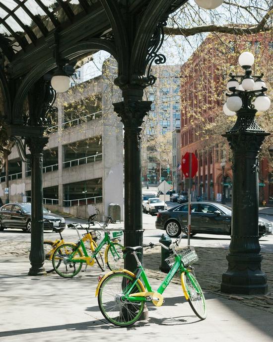 遍布西雅圖各個角落的無樁共享自行車自行車