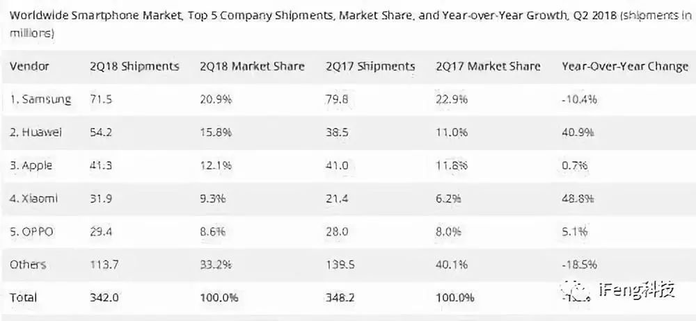 IDC數據顯示,2018年第二季度智能手機廠商共出貨3.42億部智能手機,同比下滑1.8%;中國智能手機市場出貨量約1.05億臺,同比下降5.9%。市場開始滑坡之后,需要由差異化的創(chuàng)新產品來滿足用戶需求,刺激用戶換機。